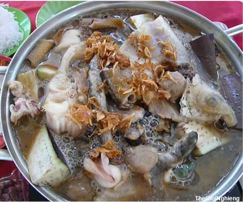 Thịt lươn sau khi làm sạch sẽ được xào chung với nghệ, ớt, tiêu xay. Nước dùng được ninh từ xương lợn, bò, xương cá và xương lươn. Đặc biệt không thể thiếu hành tăm – thứ hành chỉ có ở Nghệ An, Hà Tĩnh.